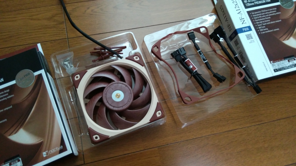 今回は私のメインPCのPCケースをご紹介したいと思います。とその前に簡易水冷CPUクーラーのファンをNoctuaの NF-A12x25 PWMに換装しました。360mmラジエーターなので3本必要でしたので、思い切って購入しました。ちょっとお高かったですが、プレミアムファンということで、CPUの温度も数℃は下がりましたし、何よりファンの音が気にならなくなりました。やっぱりNoctuaのファンは違いますね。